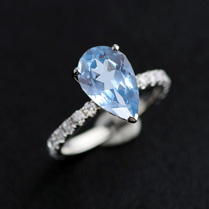 The default design option features 8x6mm Pear Cut Genuine Natural Aquamarine StoneVG-Cut, Ex-Polish, VG-Symmetry