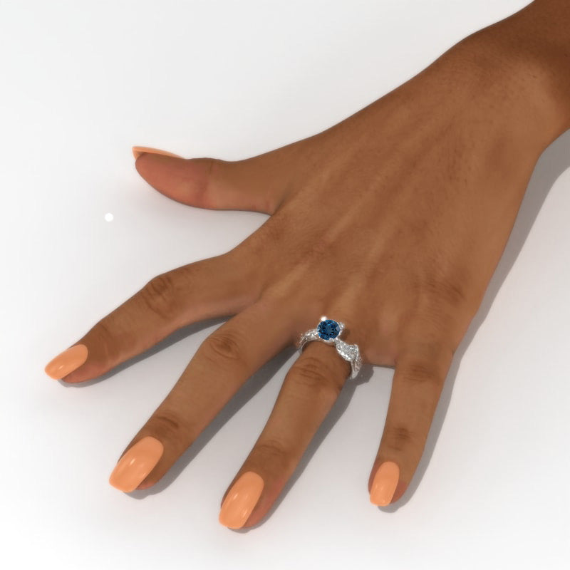 2.0 Carat Genuine London Blue Topaz Twig Engagement Ring