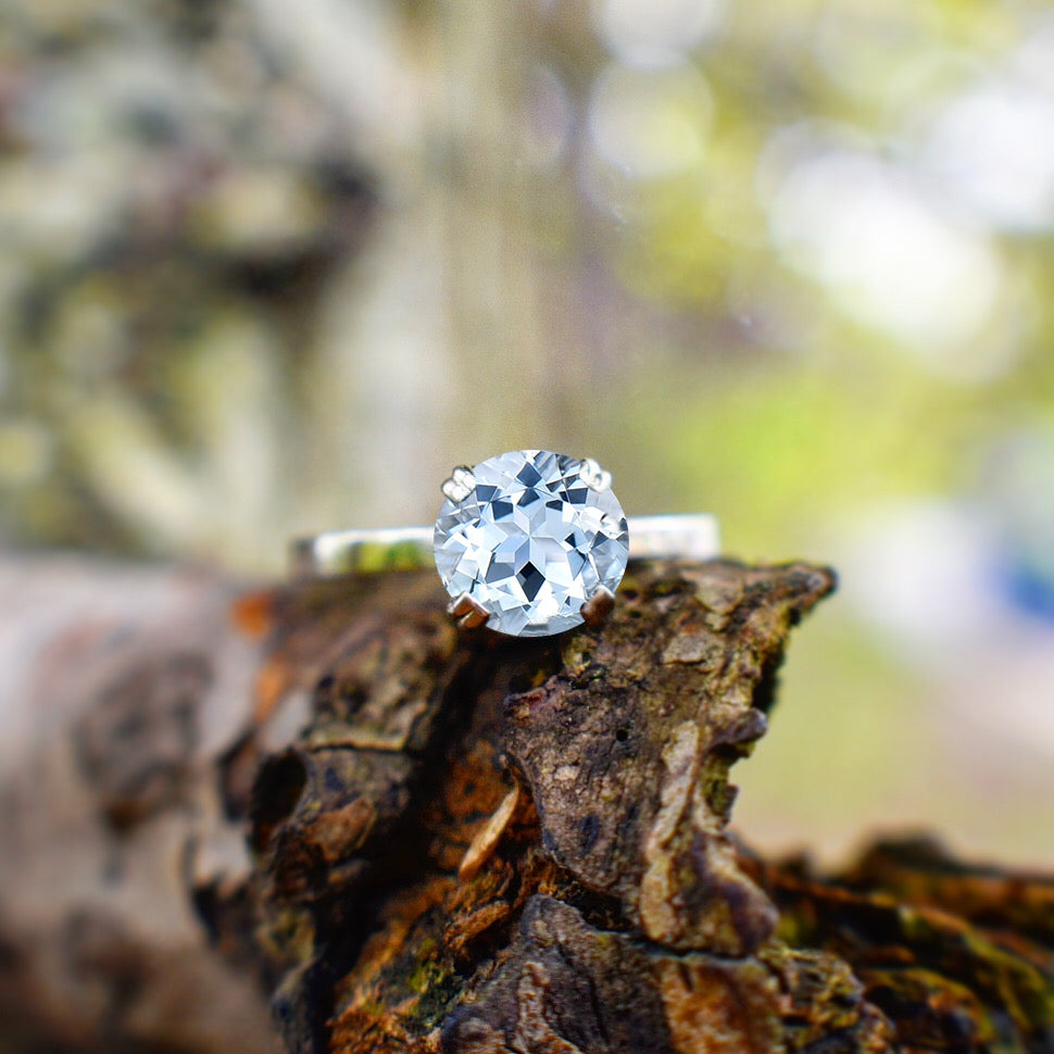 2.0 Carat Genuine Natural Aquamarine Round 8mm VG-Cut, Ex-Polish, VG-Symmetry Center Stone in 10K White Gold Ring.