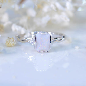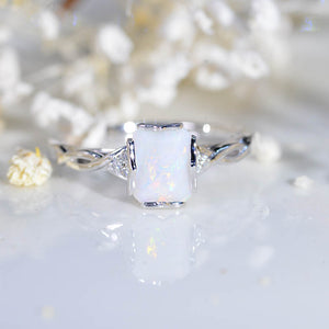 2.0 Carat Genuine Natural White Opal Emerald Cut Gold Engagement Ring - Giliarto