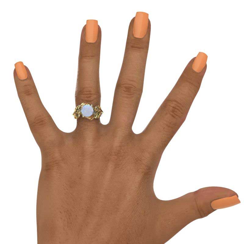 2.0 Carat Genuine White Opal Floral Gold Engagement Ring