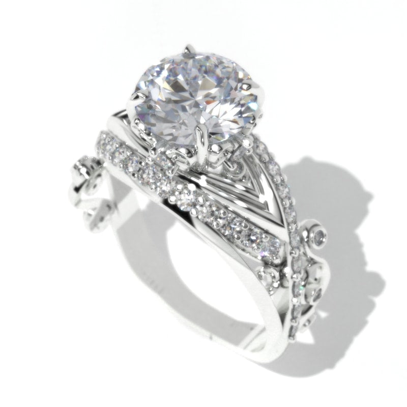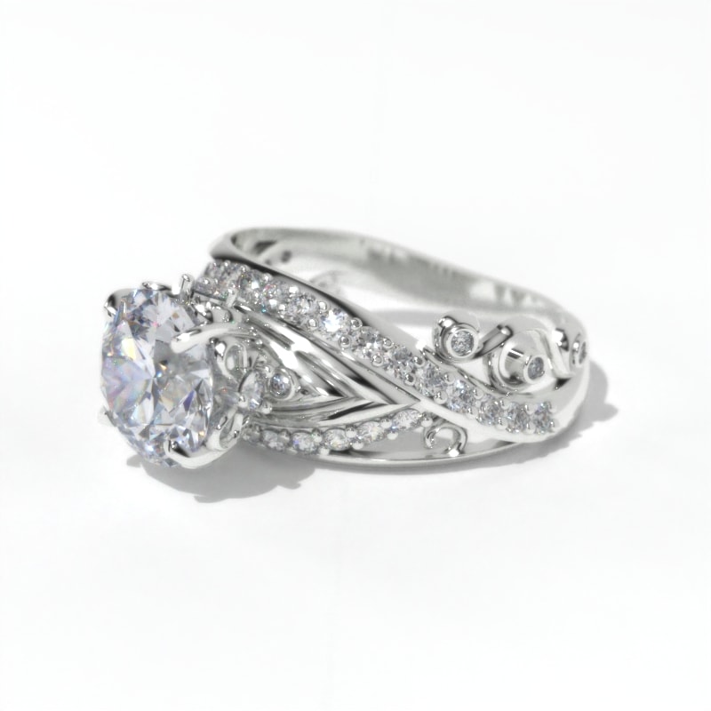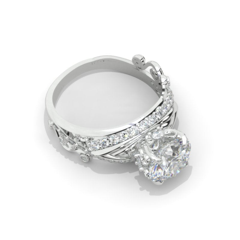 This design is another beautiful variation of a lattice element ring with one center stone piece and beautiful accent stones.