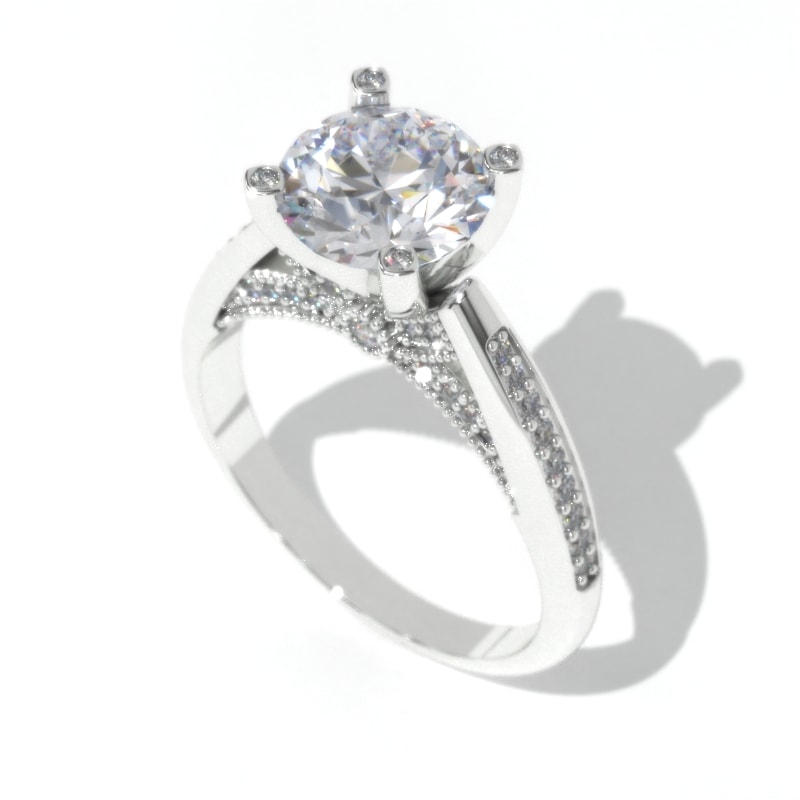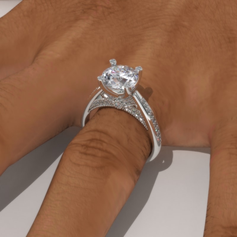 2.0 Carat Moissanite (Round 8mm, D-Colorless, VVS1-Clarity, Ex-Cut, Ex-Polish, VG-Symmetry) Ring with 560.3 Carat T.W. D-Colorless, VVS1 clarity accent stones and 14K White Gold Ring.Â