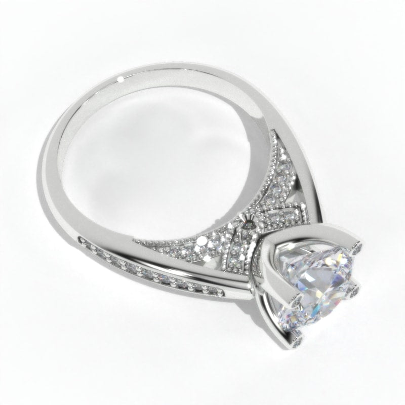 -This design is another beautiful variation of a lattice element ring with one center stone piece and beautiful accent stones.