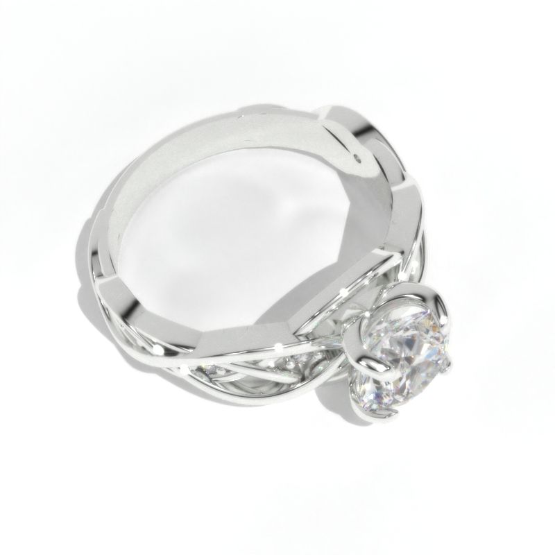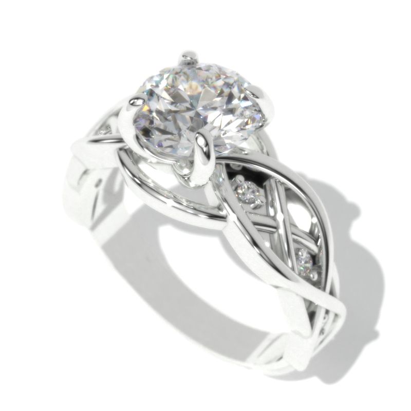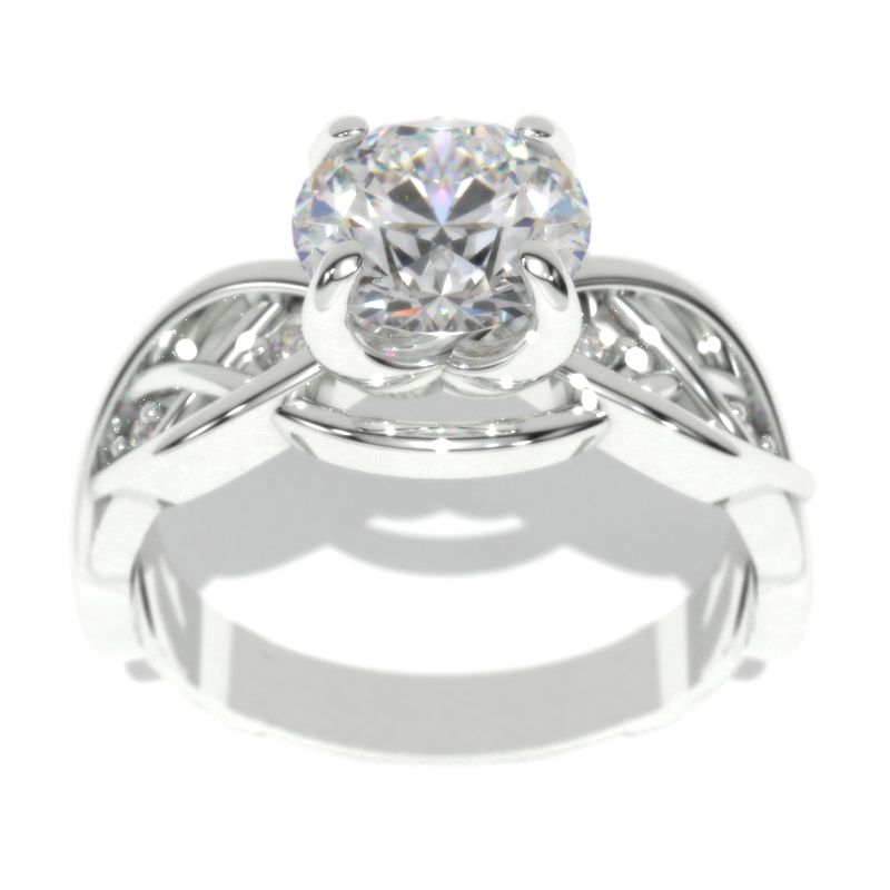 This design is another beautiful variation of a lattice element ring with one center stone piece and beautiful accent stones.