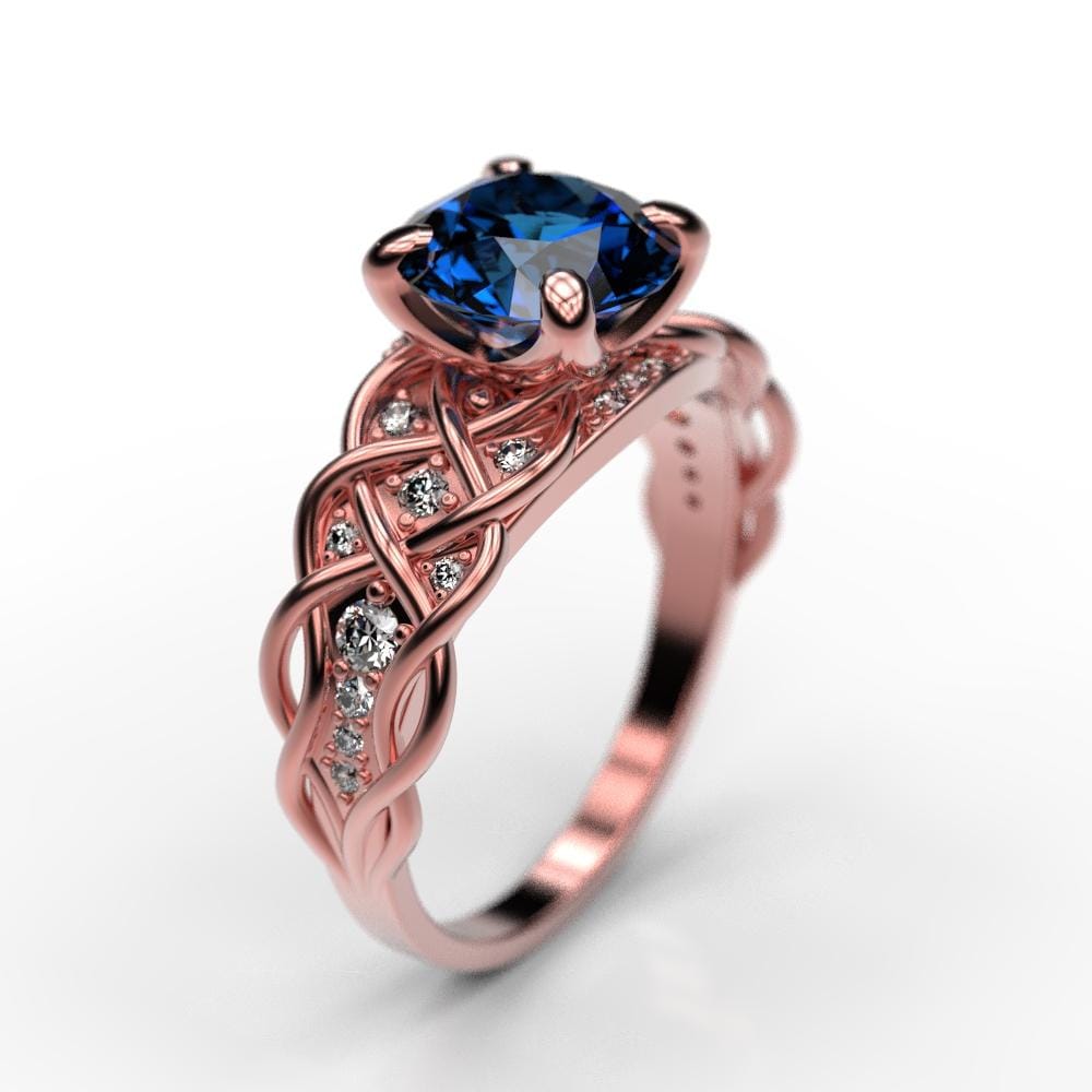 This one of a kind ring features beautiful lattice design which embeds gorgeous jewels of your choice and elegantly twists into the main center stone .