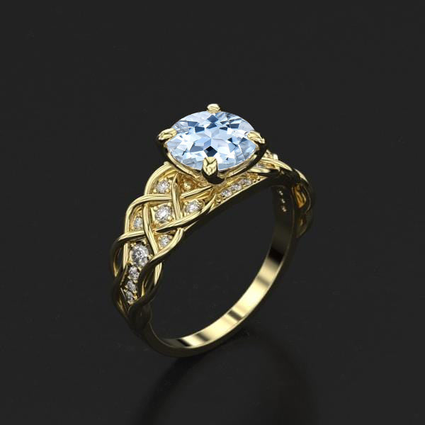 2.0 Carat Genuine Natural Aquamarine Center Stone (Round 8 mm) and 24 Natural Diamond Accent Stones I-J color, VVS1 clarity (0.2 CTW ) with 14K Yellow Gold. Please remember that you can customize this ring in any way you would like and chose metals and stones.
