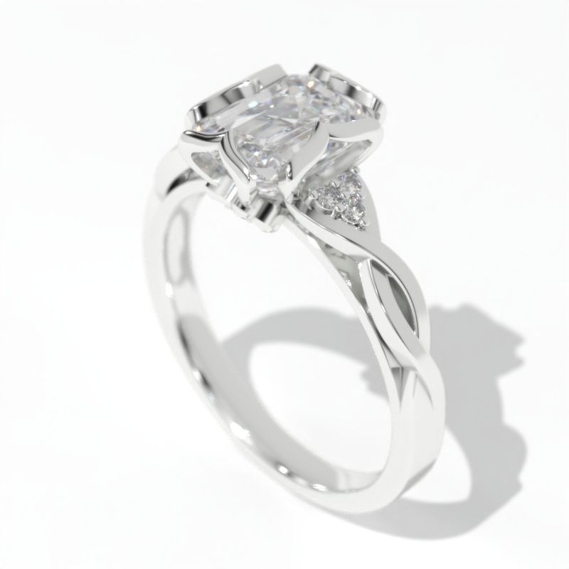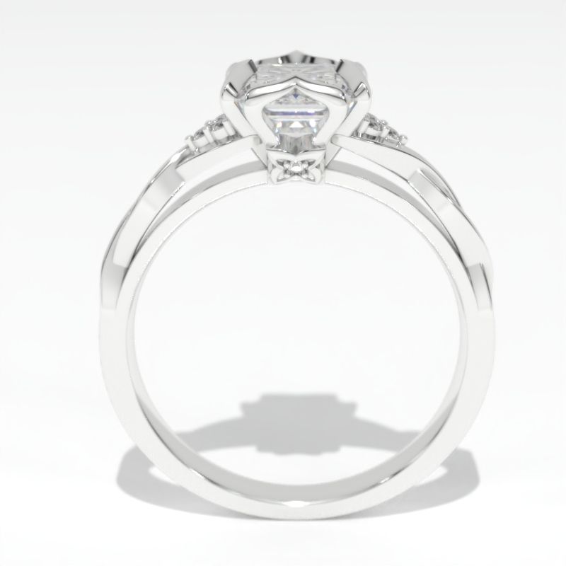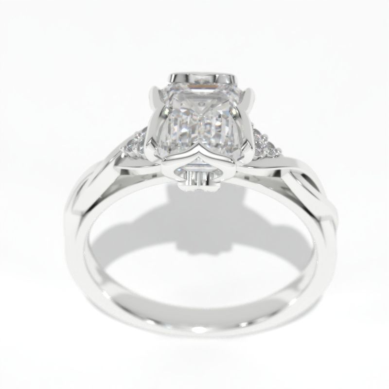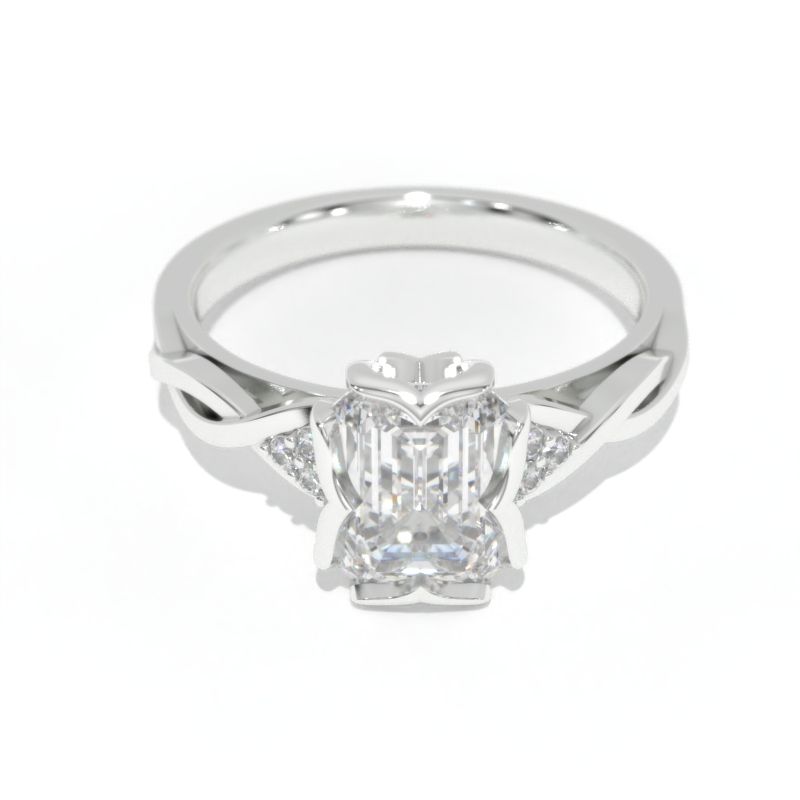 The default design option features 2.0 Carat Giliarto Moissanite Emerald 8x6mm D-Colorless, VVS1-Clarity, VG-Cut, Ex-Polish, VG-Symmetry Center Stone (D-Colorless)