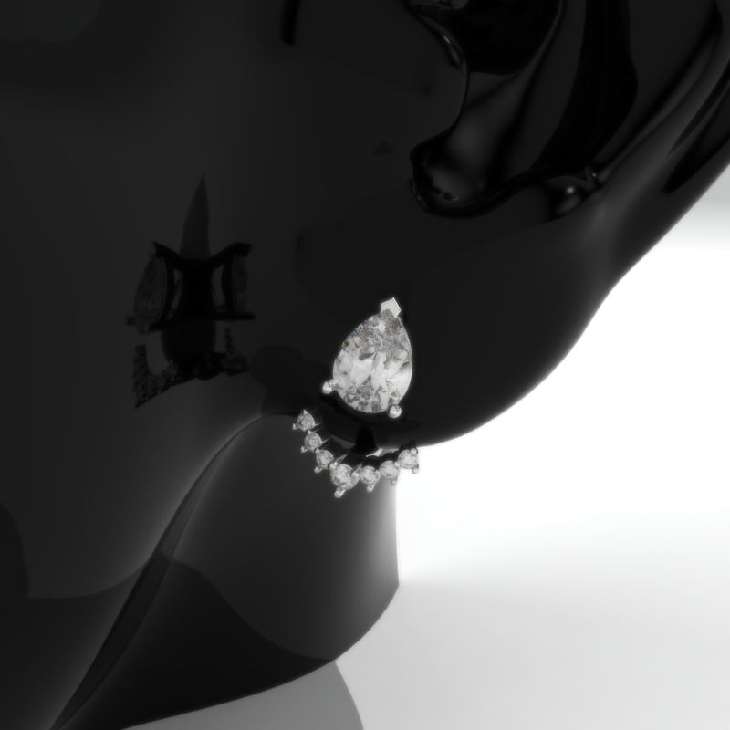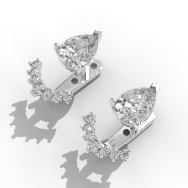 Pair of Approximately 1.0+ Carat LAB-Grown Diamond Stones (Pear 8x5mm, D-Colorless, VVS1-Clarity, Ex-Cut, Ex-Polish, VG-Symmetry) and 8 Accent Stones (0.2 CTW D-Colorless, VVS1 clarity) with 14K White Gold.