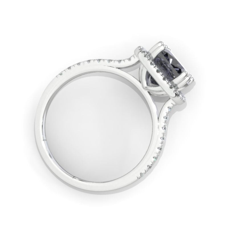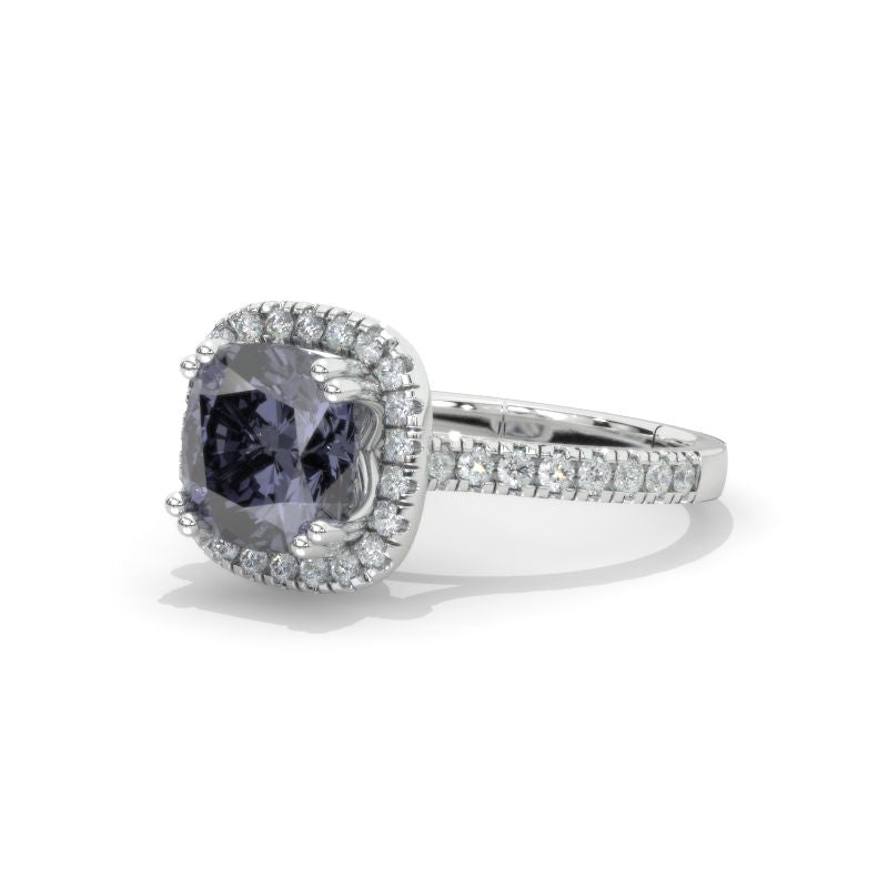 2.5 Carat Cushion Dark Gray Blue Moissanite Halo Engagement Ring. Vict - Giliarto