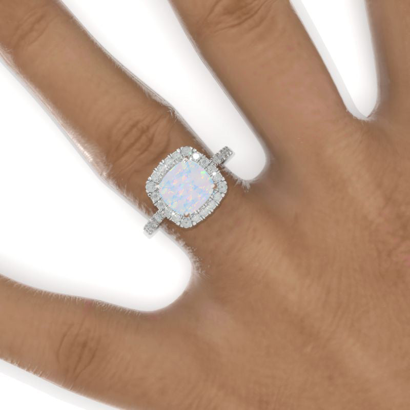 2.5 Carat Cushion Genuine Natural White Opal Halo Engagement Ring. Vic - Giliarto