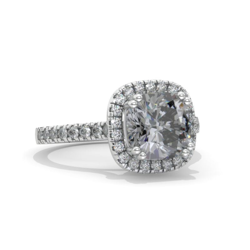 2.5 Carat Cushion Gray Moissanite Halo Engagement Ring. Victorian 14K - Giliarto