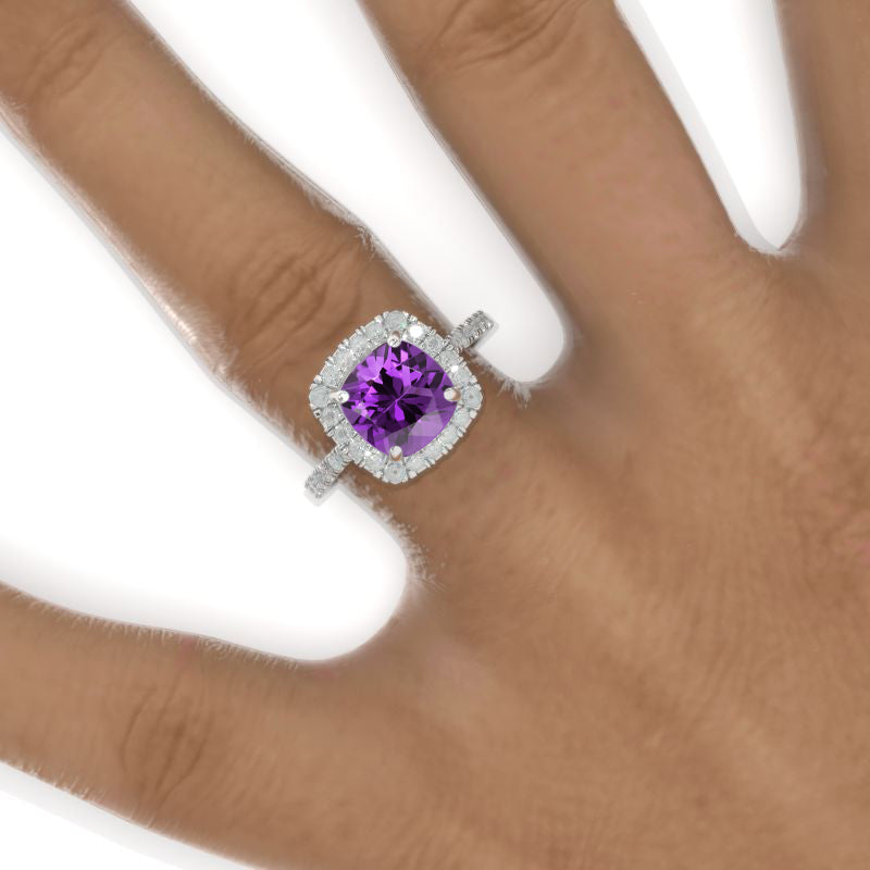 2.5 Carat Cushion Natural Amethyst Halo Engagement Ring Victorian 14K - Giliarto