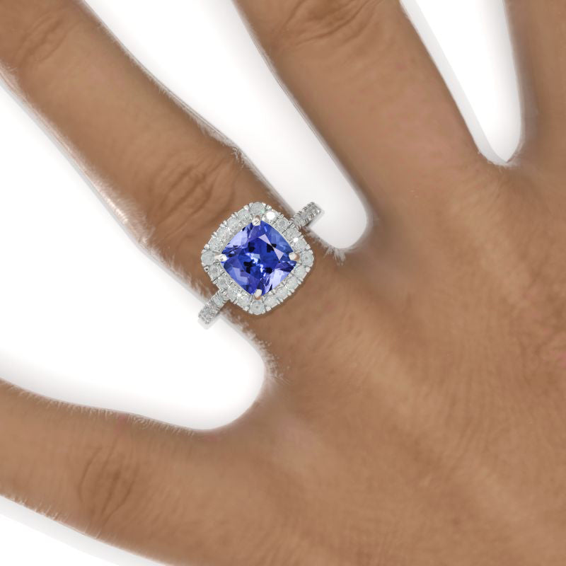 2.5 Carat Cushion Natural Genuine Tanzanite Halo Engagement Ring. Vict - Giliarto