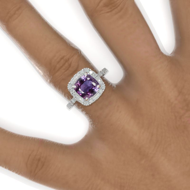 2.5 Carat Cushion Purple Sapphire Halo Engagement Ring. Victorian 14K - Giliarto
