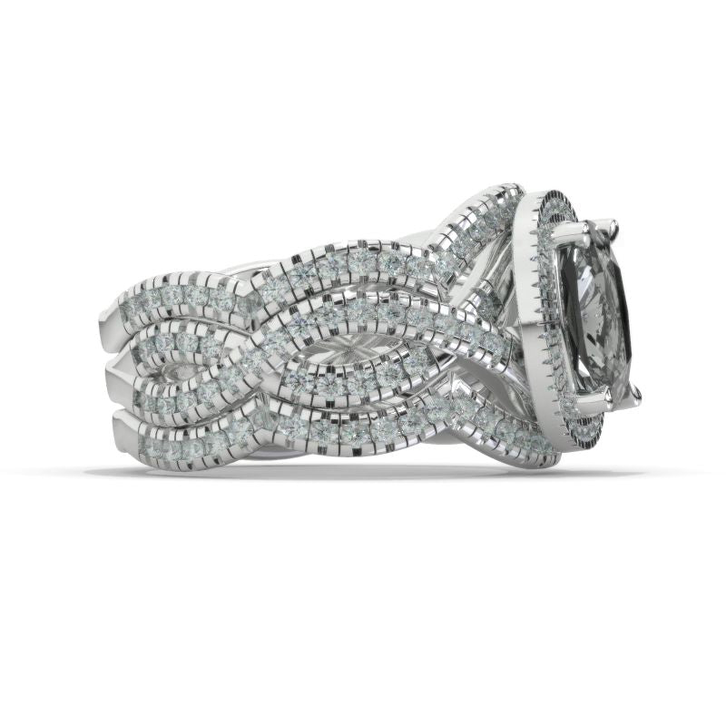 Engagement Ring Approximately 2.5 Carat Gray Moissanite Cushion Shape 9x7mm VVS1-Clarity, VG-Cut, Ex-Polish, VG-Symmetry Center Stone with Colorless 0.3 CTW Diamond