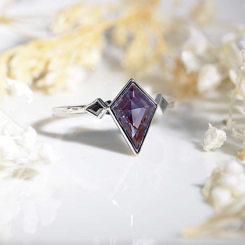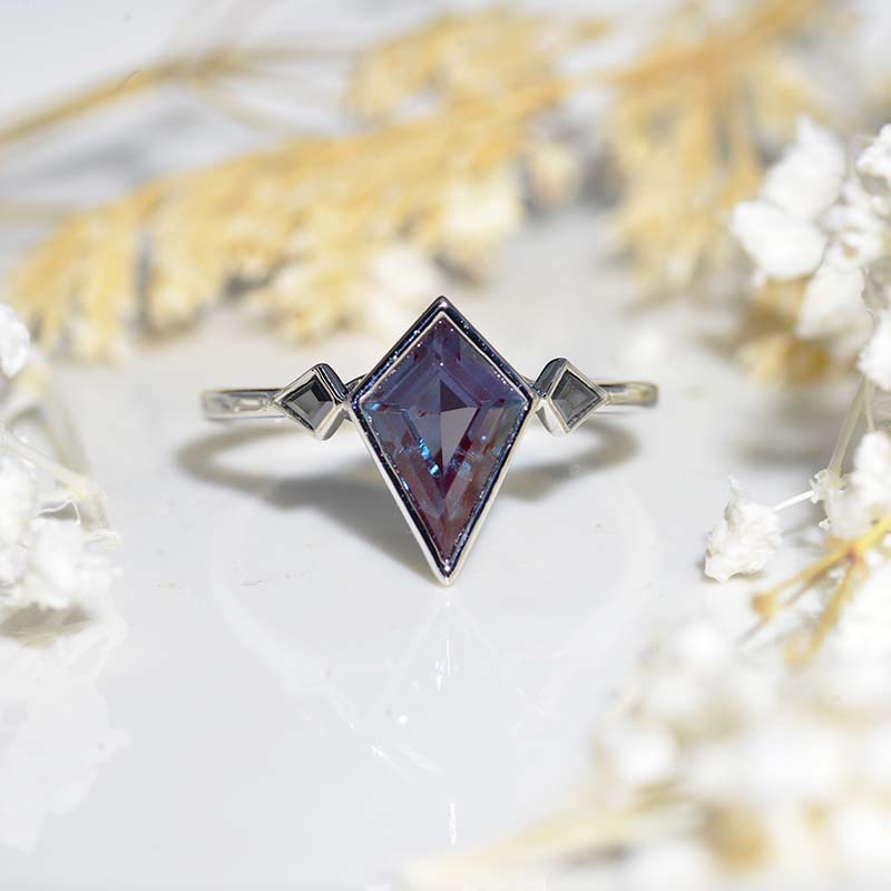 2.5 Carat Fancy Kite Shield Alexandrite Engagement Ring. Non Tradition - Giliarto