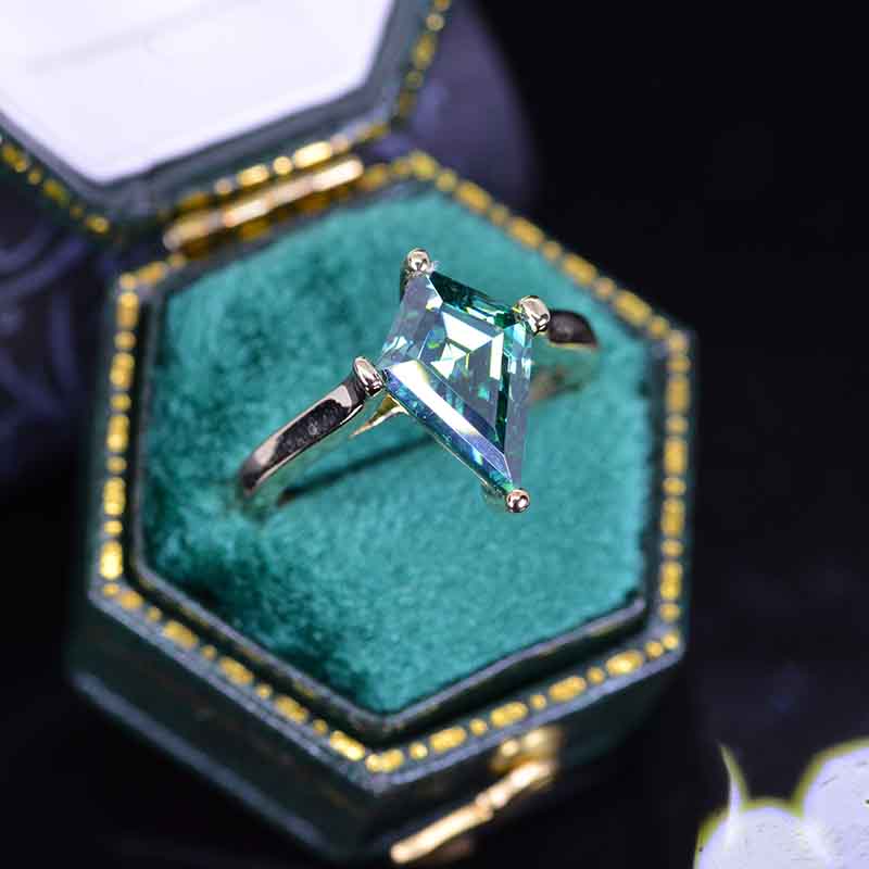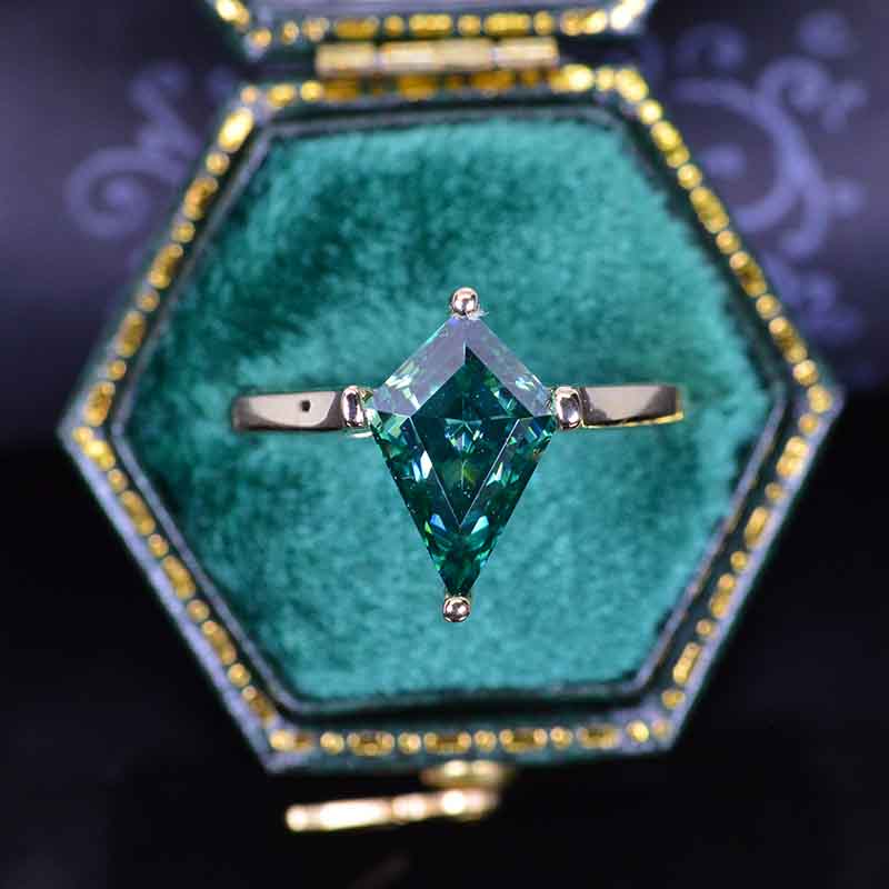 2.5 Carat Green Kite Moissanite Solitaire Engagement Ring