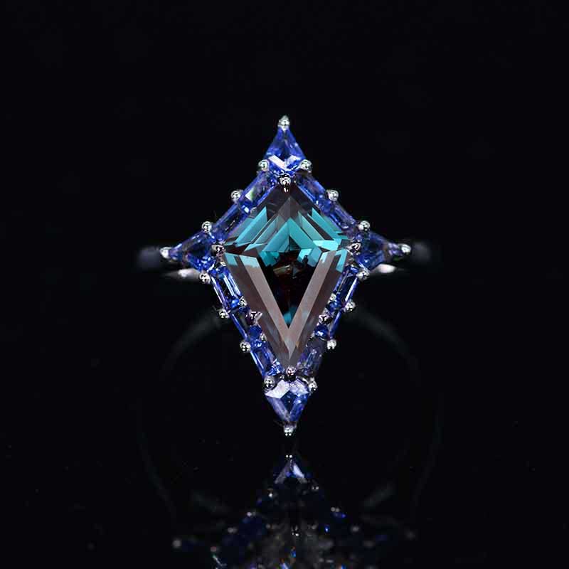 2.5 Carat Kite Alexandrite Halo Sapphire Engagement Ring. 2.5CT Fancy - Giliarto
