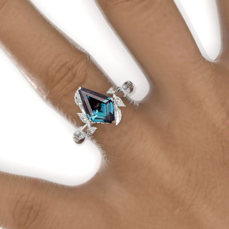 2.5 Carat Kite Alexandrite Twig Floral Leaf 14K White Gold Engagement - Giliarto