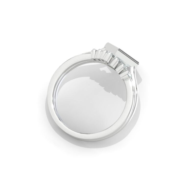 The default design option features 12x8mm Kite Center Moissanite Stones,Â