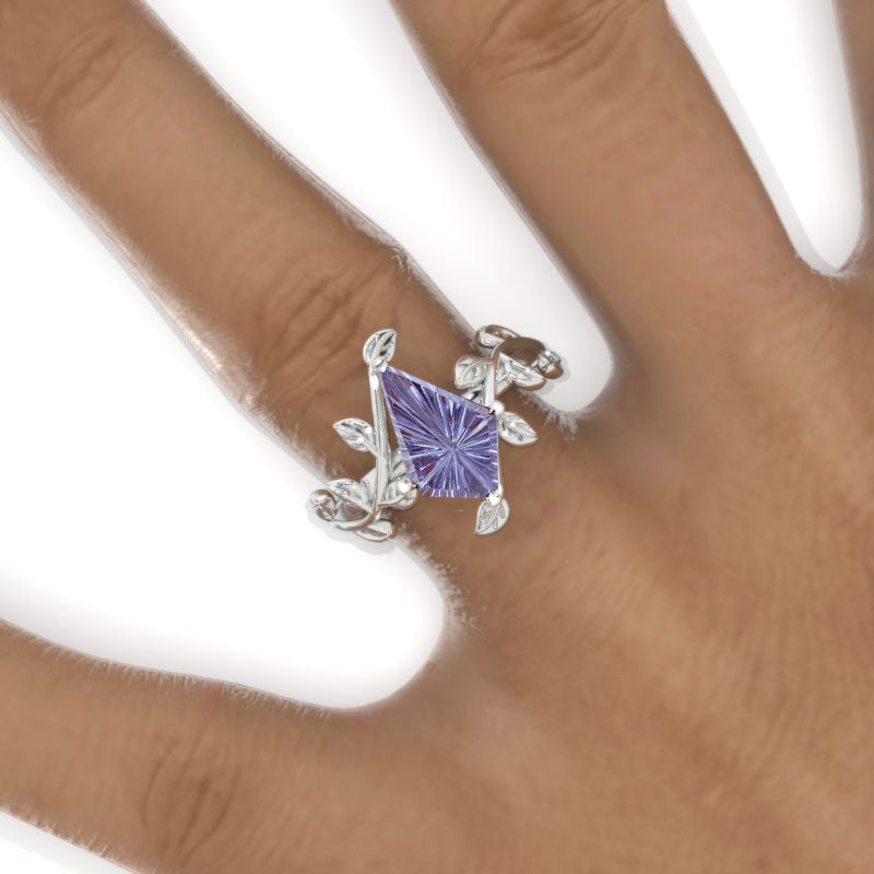The default design option features 12x8mm Kite Center Fireworks Cut Ethically LAB-Grown Alexandrite Stones, VVS1-Clarity, VG-Cut, Ex-Polish, VG-Symmetry