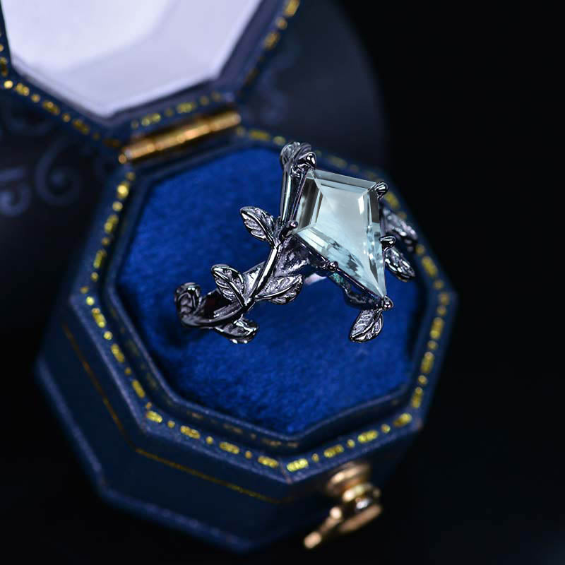 2.5 Carat Kite Genuine Aquamarine Black Gold Engagement Ring. 2.5CT Fa - Giliarto