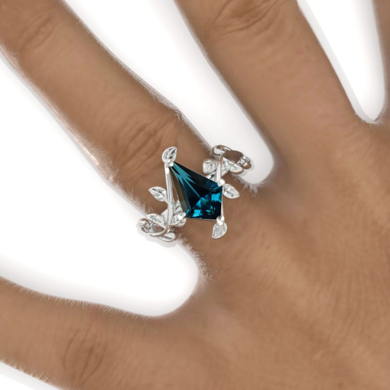 2.5 Carat Kite Genuine London Blue Topaz Engagement Ring. 2.5CT Fancy - Giliarto