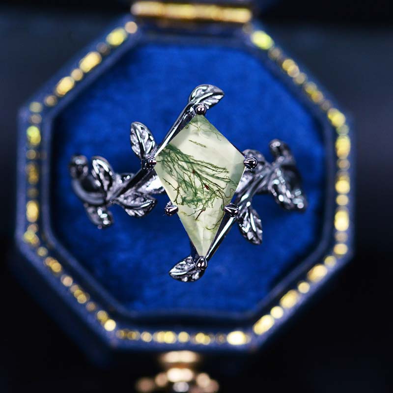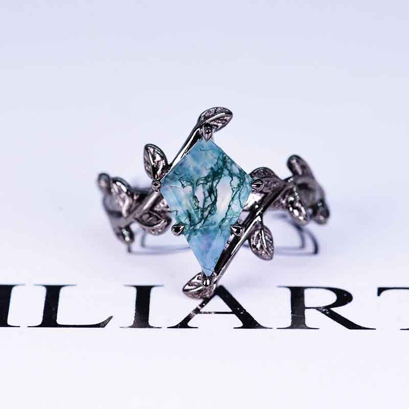 2.5 Carat Kite Genuine Moss Agate Black Gold Engagement Ring. 2.5CT Fa - Giliarto