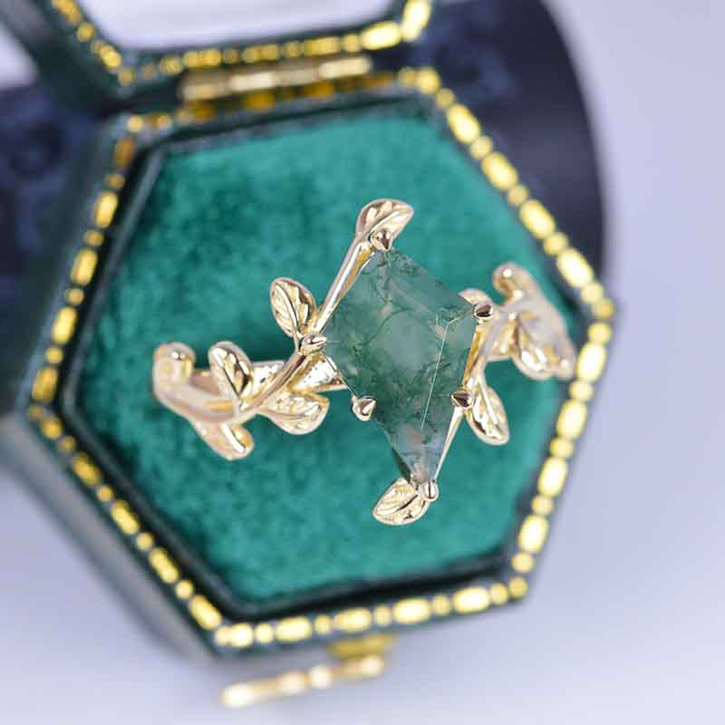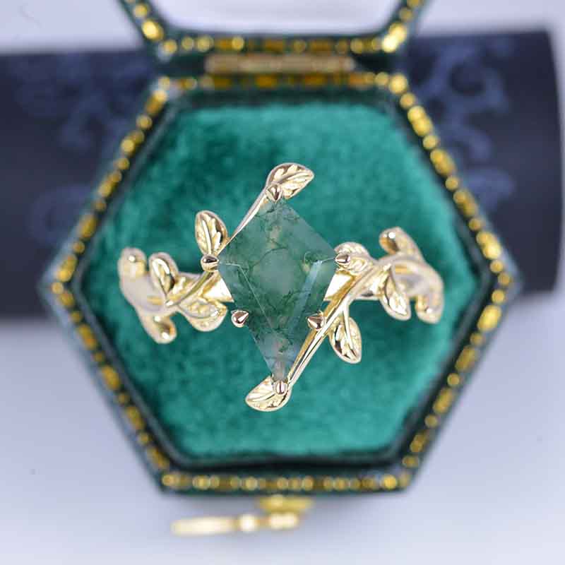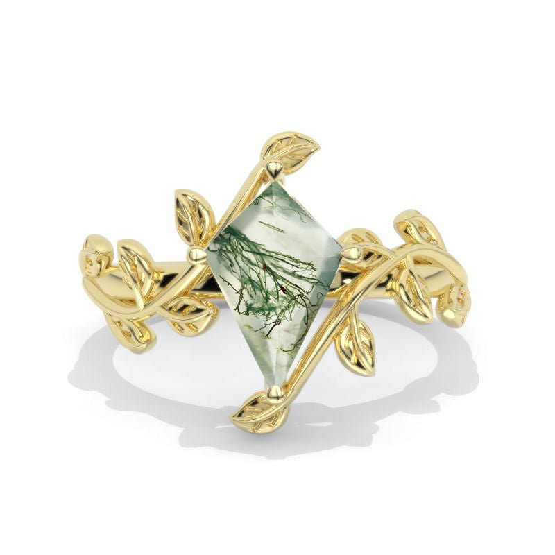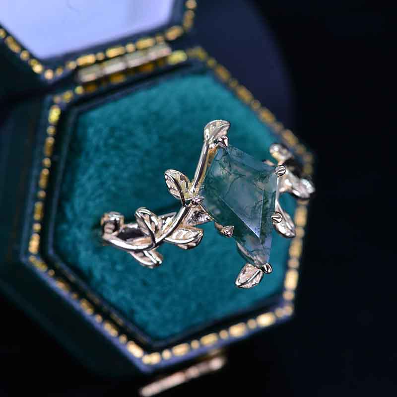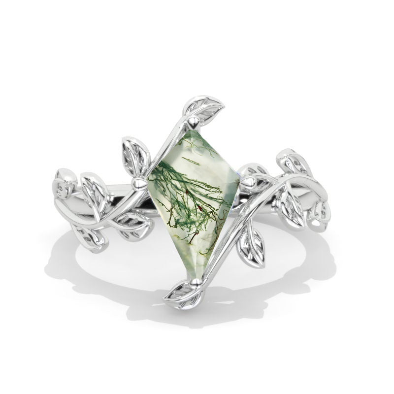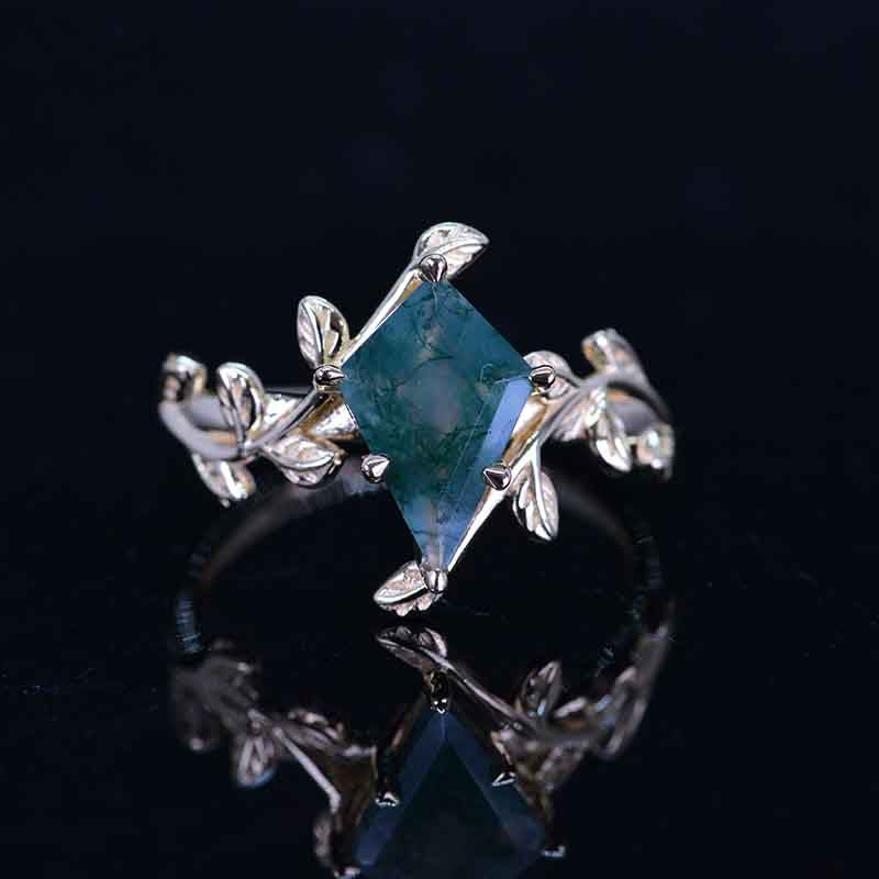 2.5 Carat Kite Genuine Moss Agate Engagement Ring. 2.5CT Fancy Shield - Giliarto
