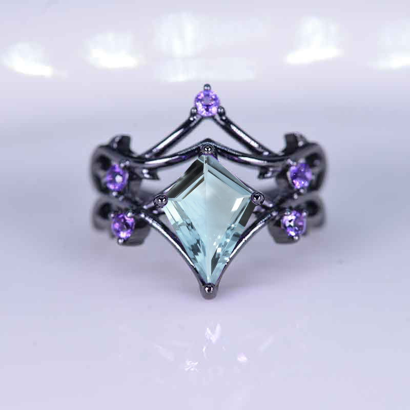 2.5 Carat Kite Genuine Natural Aquamarine Engagement Ring. 2.5CT Fancy Shield Shape Amethyst Black Gold Ring