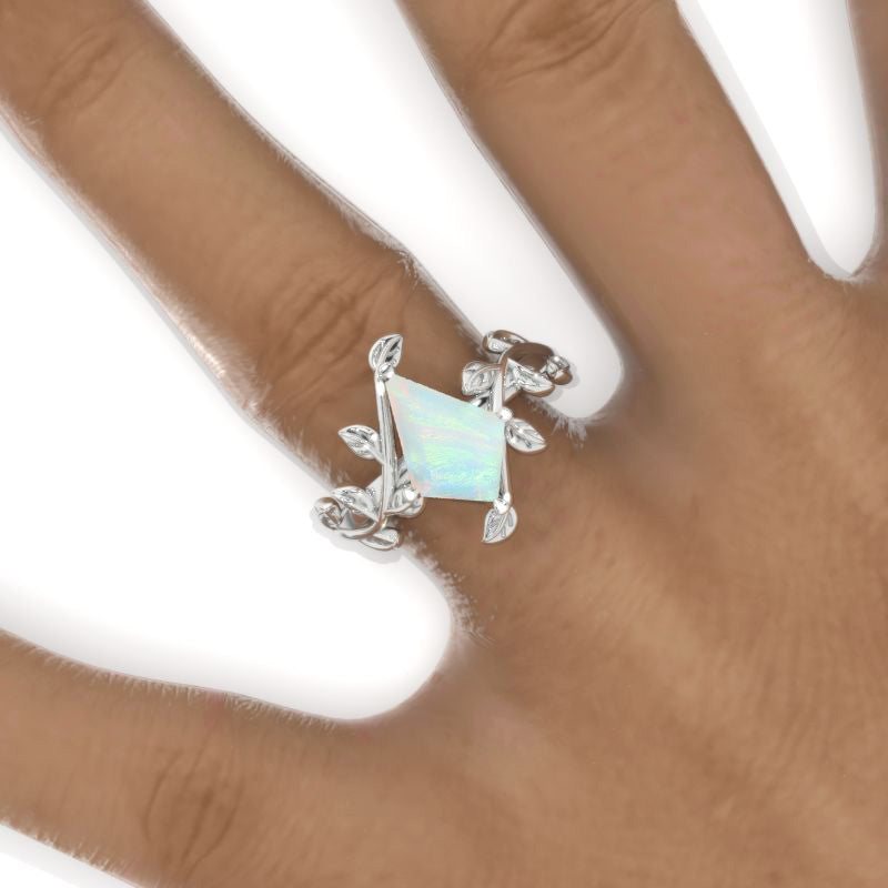 2.5 Carat Kite Genuine Natural White Opal Engagement Ring. 2.5CT Fancy - Giliarto