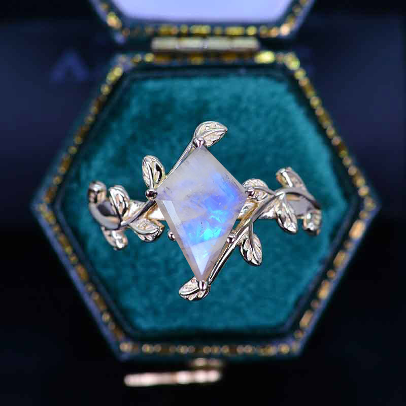 The default design option features 12x8mm Kite Center Genuine Moonstone Stones