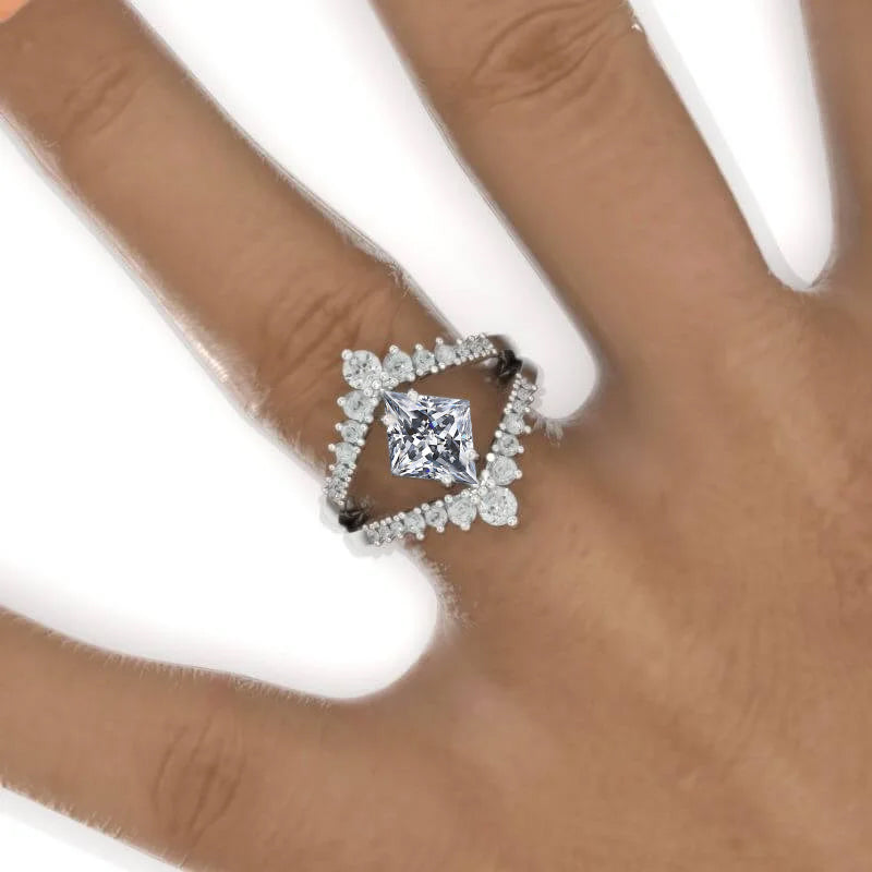 The default design option features 12x8mm Kite Center Gray Moissanite Stone and Moissanite Accent StonesÂ