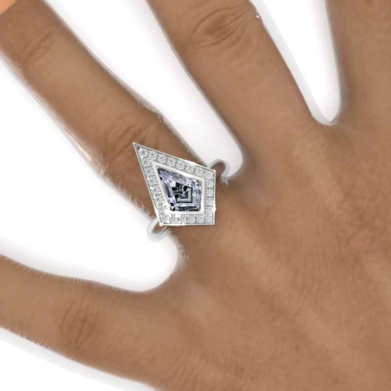 The default design option features 12x8mm Kite Center Gray Moissanite Stone and Moissanite Accent Stones:Â