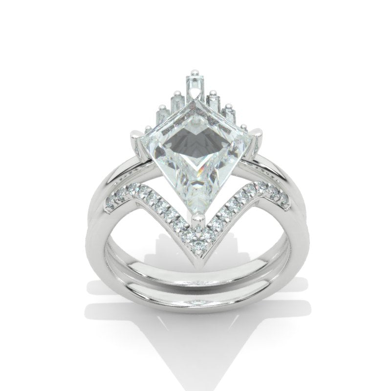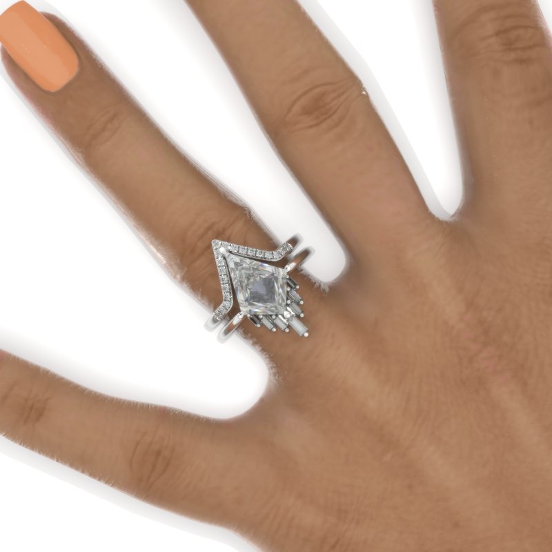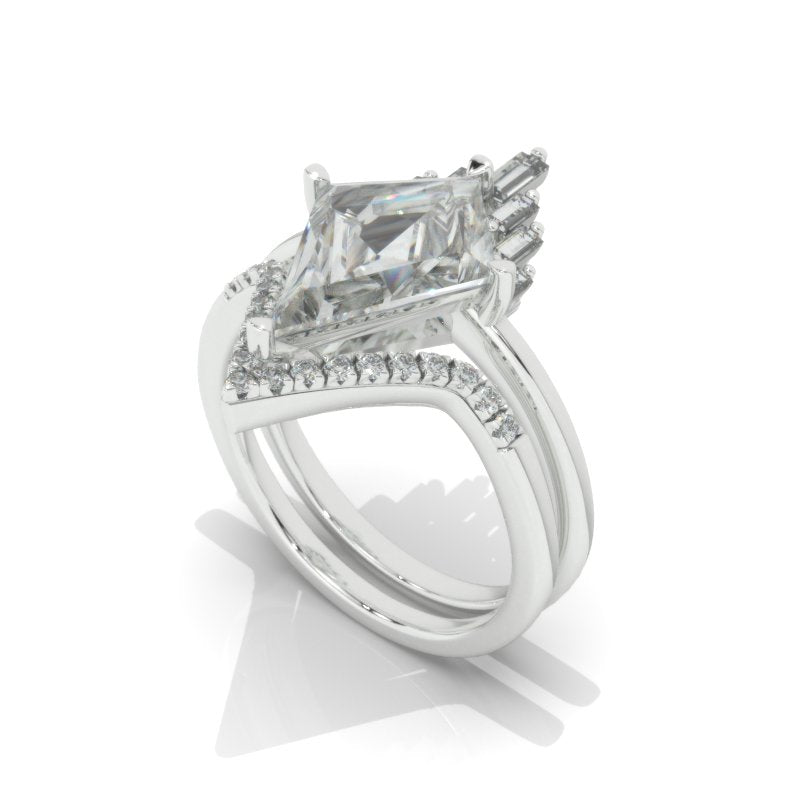 Engagement : Approximately 2.5+ Carat Lab-Grown Diamond Kite 12x8mm DEF-Colorless, VVS1-Clarity, VG-Cut, Ex-Polish, VG-Symmetry Center Stone with 38 Colorless 0.5 CTW Diamond