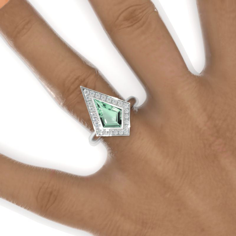 2.5 Carat Kite Mint Sapphire Halo Engagement Ring. 2.5CT Fancy Shape Bezel Mint Sapphire Ring
