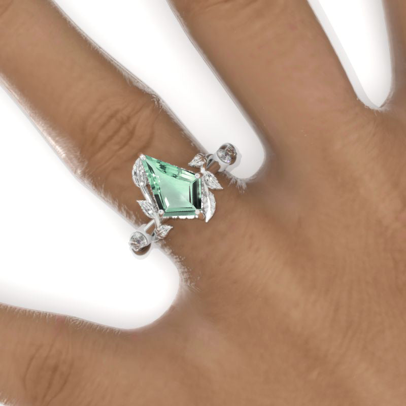 Engagement: 2.5 Carat Ethically Lab-Grown Mint Sapphire Kite 12x8mm Mint-Color, VG-Cut, Ex-Polish, VG-Symmetry Center Stone with Colorless 0.5 CTW Moissanite