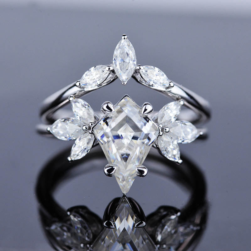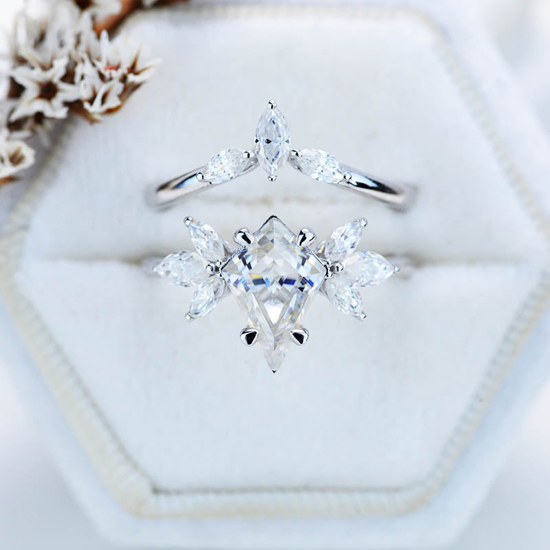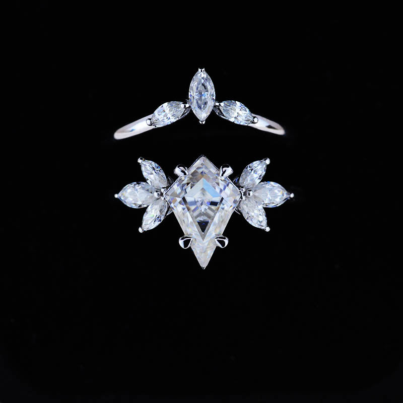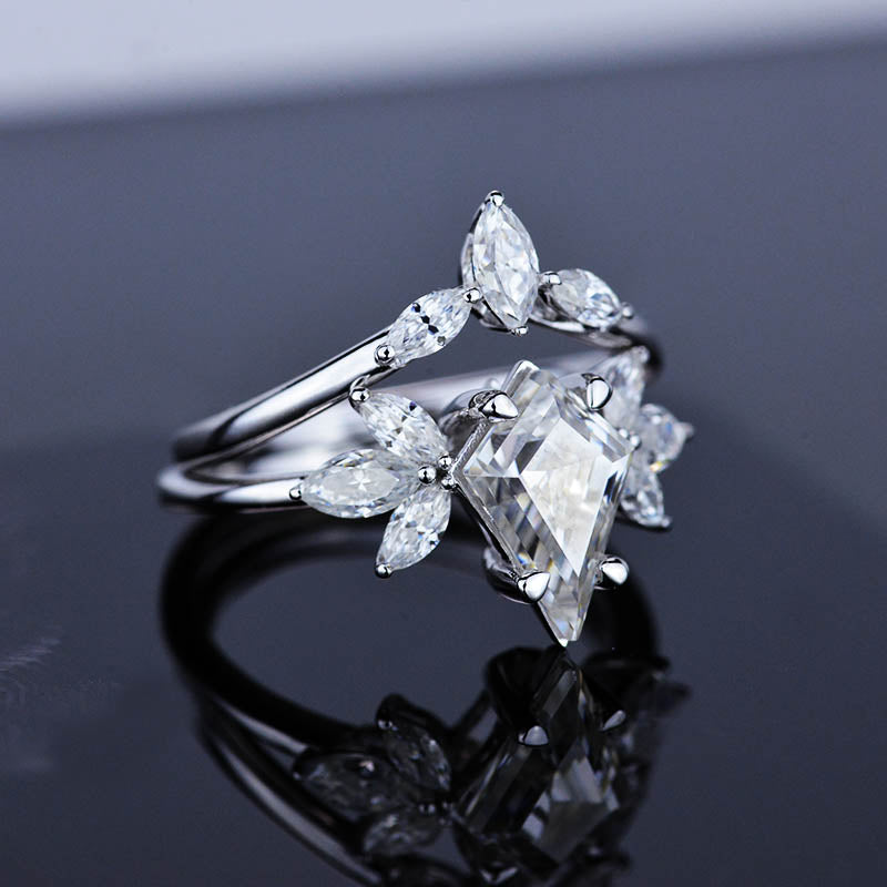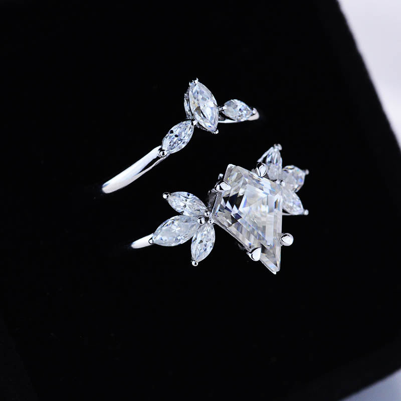 2.5 Carat Kite Moissanite Engagement Ring. 2.5CT Fancy Shape Moissanite Ring Set