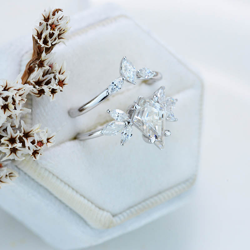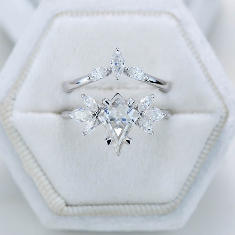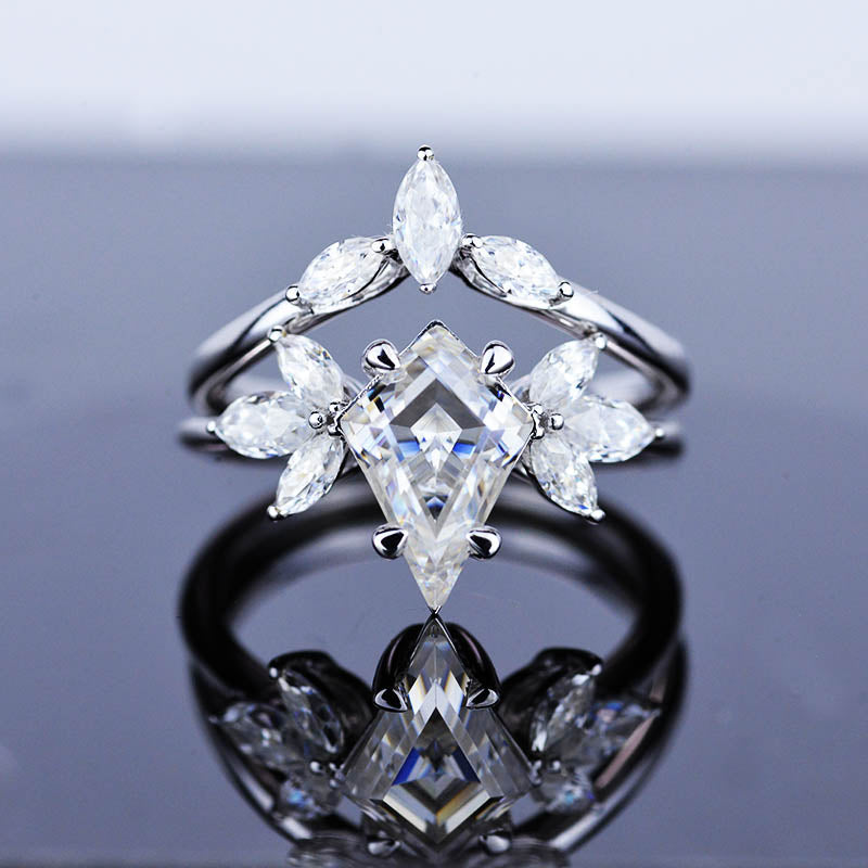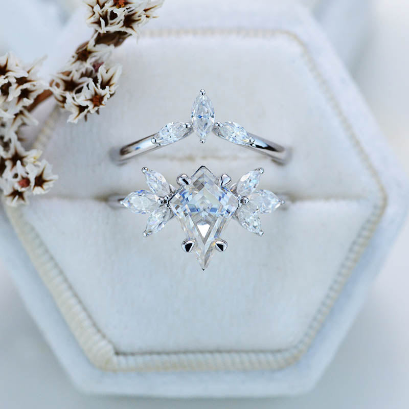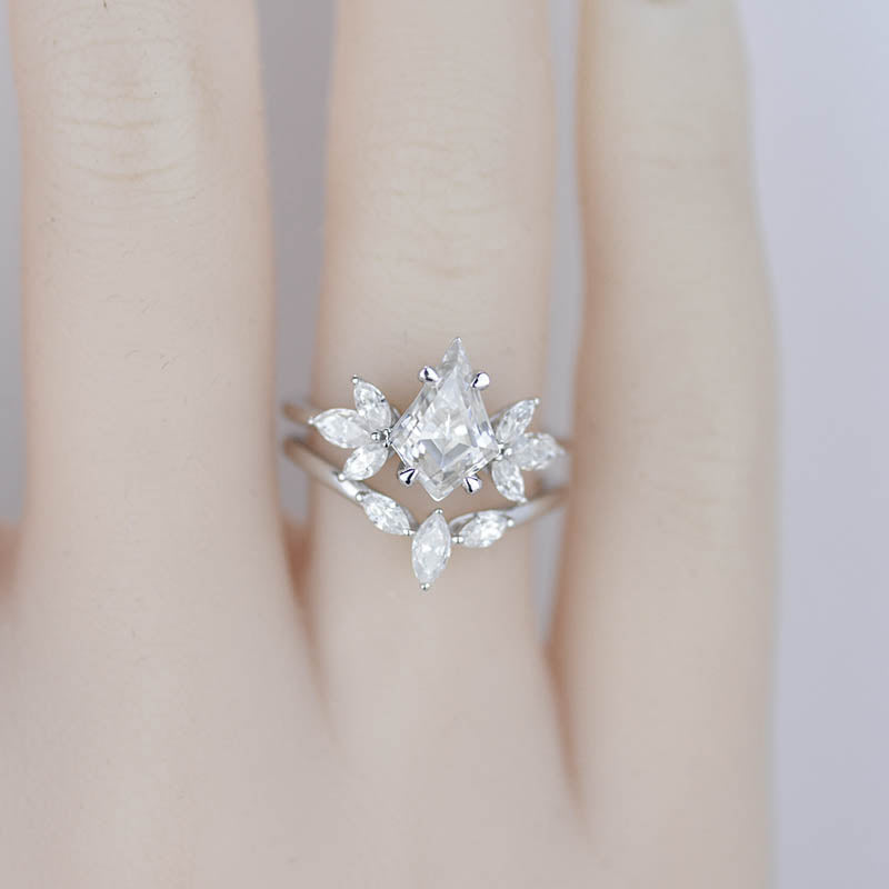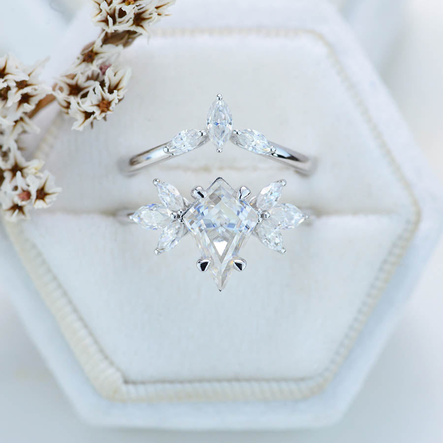2.5 Carat Kite Moissanite Engagement Ring. 2.5CT Fancy Shape Moissanite Ring Set