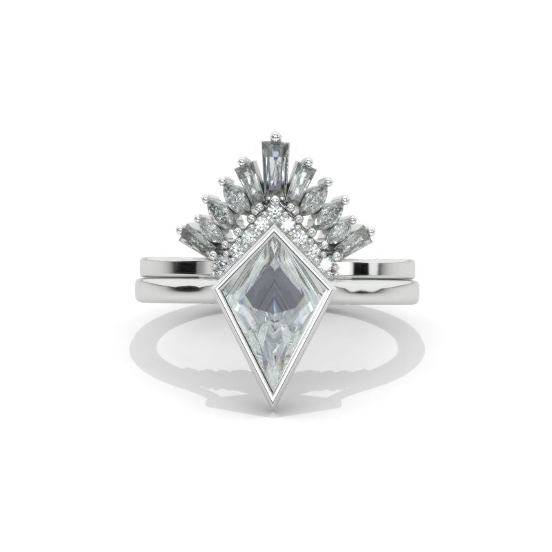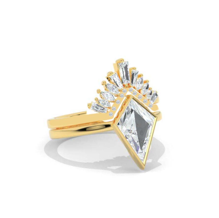The default design option features  Moissanite,  D-Colorless, VVS1-Clarity, VG-Cut, Ex-Polish, VG-Symmetry, Set with Colorless Moissanite Accent stones in 14K Yellow Gold Engagement Ring .Â