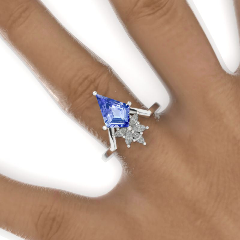 2.5 Carat Kite Natural Genuine Tanzanite Engagement Ring. 2.5CT Fancy - Giliarto
