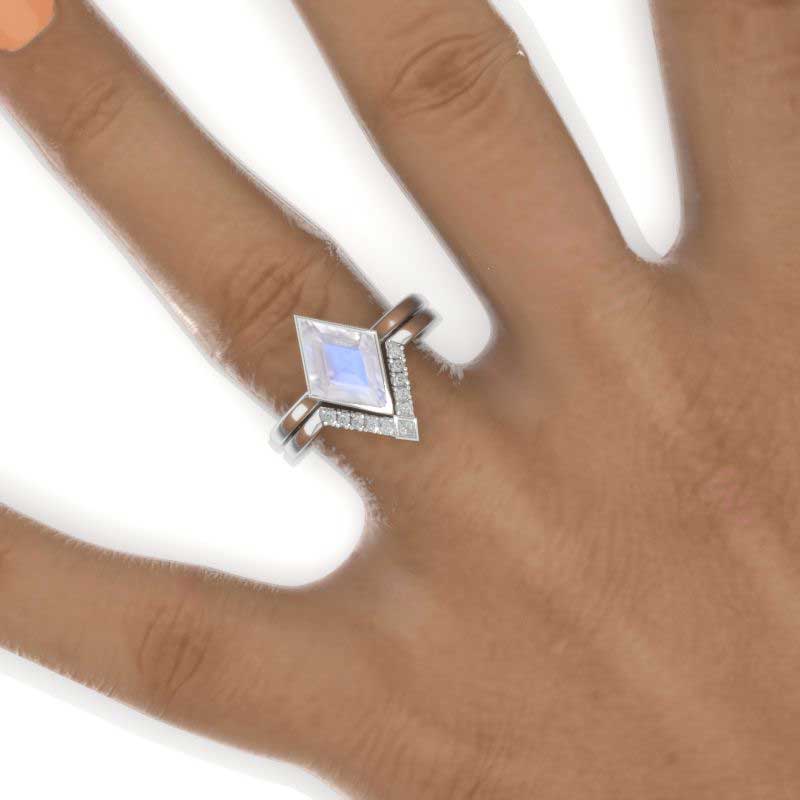 2.5 Carat Lozenge Natural Moonstone Engagement Ring. 2.5CT Fancy Kite Shape Natural Moonstone Ring Set