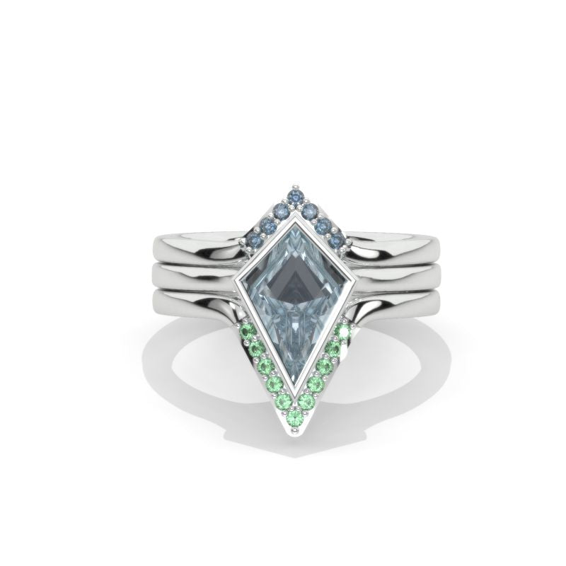 2.5 Carat Kite Natural Moonstone Engagement Ring. 2.5CT Fancy Shape Moissanite Ring Custom Set