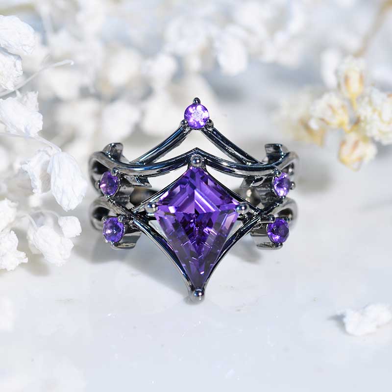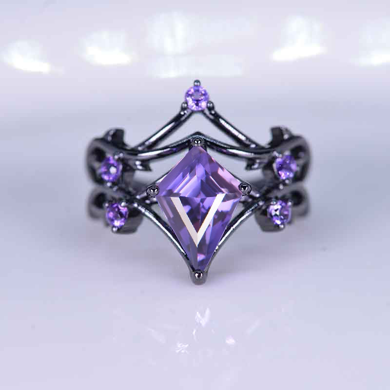 2.5 Carat Kite Purple Sapphire Engagement Ring. 2.5CT Fancy Shield Shape Purple Sapphire Black Rhodium Gold Ring