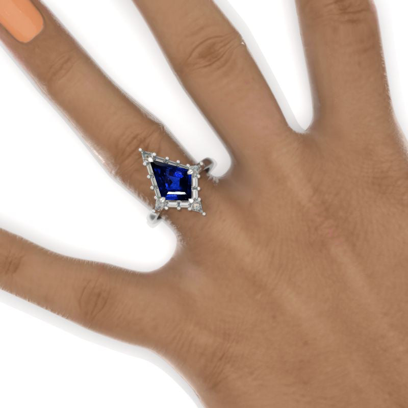 2.5 Carat Kite Royal Blue Sapphire Engagement Ring. 2.5CT Fancy Shape - Giliarto