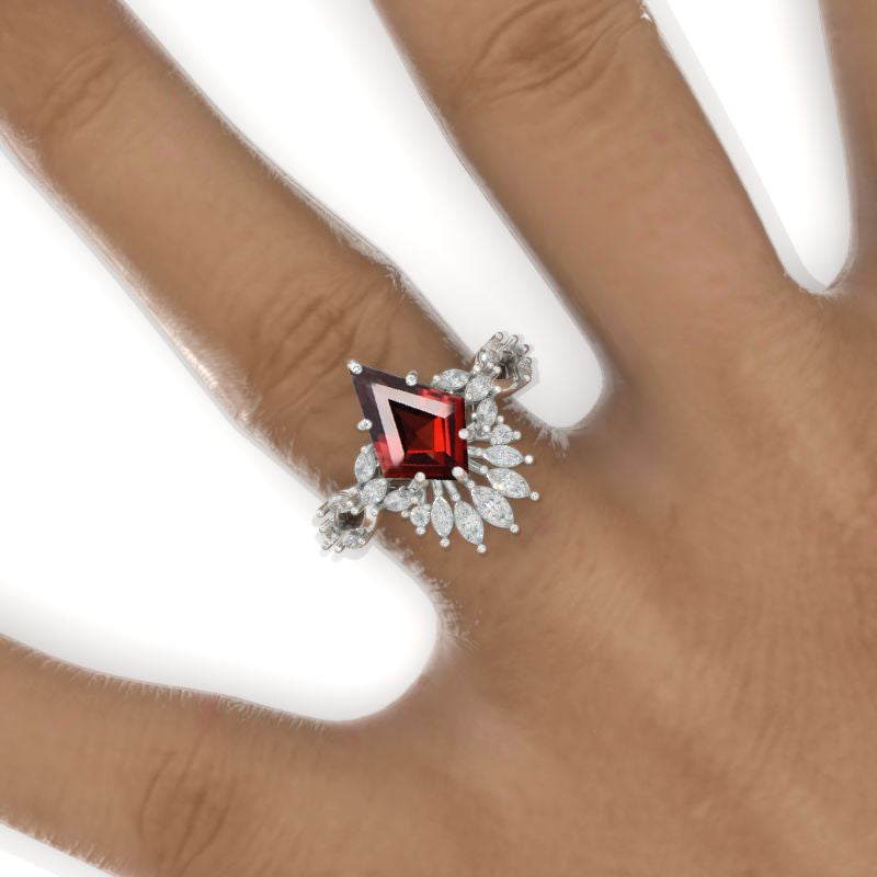 2.5 Carat Kite Ruby Halo 14K White Gold Engagement Ring - Giliarto