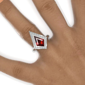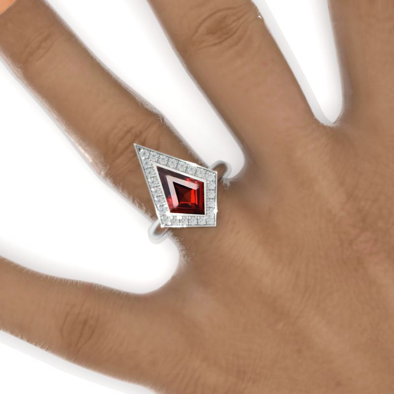 2.5 Carat Kite Ruby Halo Engagement Ring. 2.5CT Fancy Shape Bezel Ruby Ring