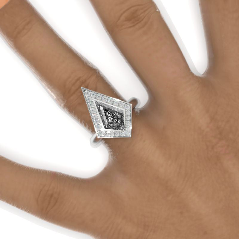 2.5 Carat Kite Rutilated Quartz Halo Engagement Ring. 2.5CT Fancy Shap - Giliarto