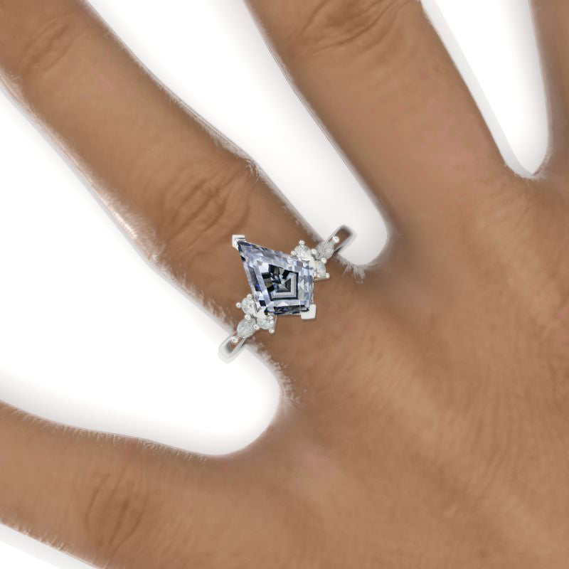 2.5 Carat Kite Shield Gray Moissanite Engagement Ring. 2.5CT Fancy Shape Gray Moissanite Ring